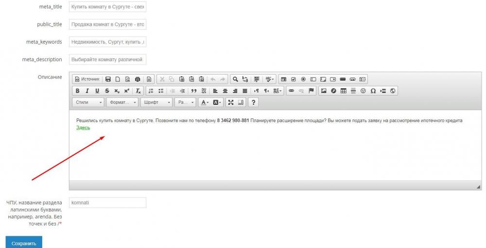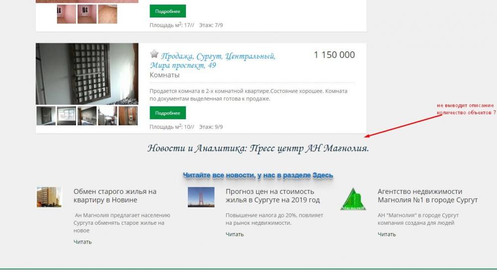 Подскажите пожалуйста где в настройках указать, чтоб выводилось описание страницы созданная в структуре, и карта, для хотя бы одного объекта. Сейчас для комнат 7 шт, описания и карты нету, для студий 22 шт все в порядке выводится и карта и описание